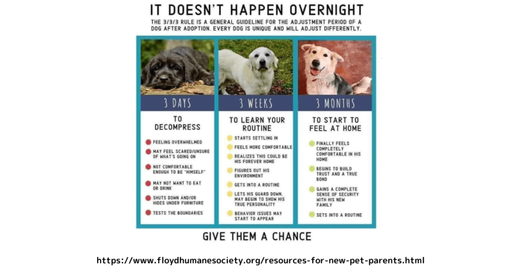 一般的に、保護犬は次のようなステップを踏みながら、新しい家族として馴染んでいきます。