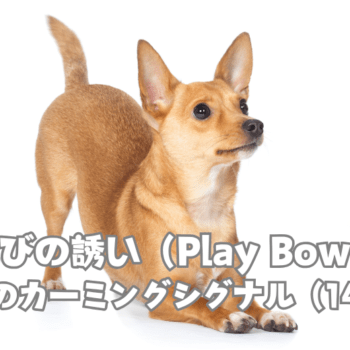 - 遊びの誘い(Going down in play position/ Play Bow):カーミングシグナル(14)